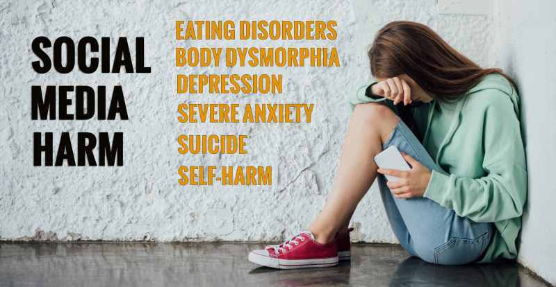 Studies have shown that the use of social media negatively impacts adolescents as their brains develop. These studies have demonstrated that increased social media screen time among children and young adults is associated with higher rates of depression, eating disorders, body dysmorphia, severe anxiety, suicide, and self-harm.